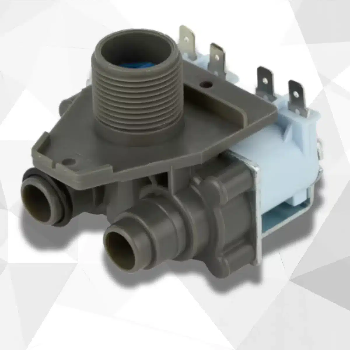 The Two-Way Solenoid Valve directs water into different sections of the washing machine during wash and rinse operations. It opens and closes automatically based on electronic signals from the machine’s control board.